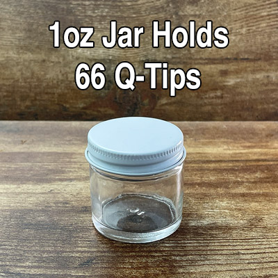 1 oz size straight sided glass jar holds approx. 66 q-tips