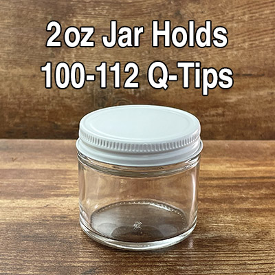 2 oz size straight sided glass jar holds approx 112 q-tips