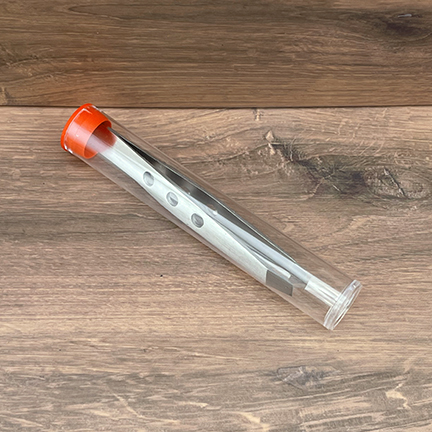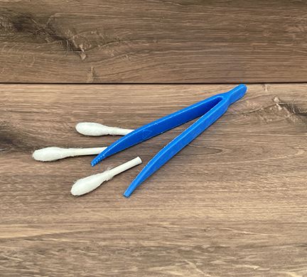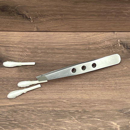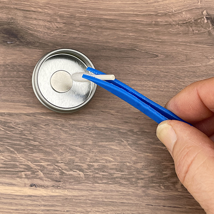 Plastic tweezer makes loading q”s into a tin that has a magnet much easier!